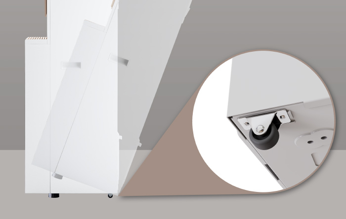 Hidden wheels are mounted at the bottom so you can conveniently move it to the desired location.