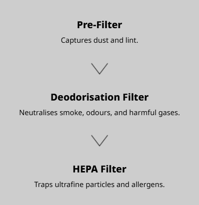 Advanced sensors track PM1.0, PM2.5, and PM10 in real time — with intuitive colour-coded lights for instant air quality insights.